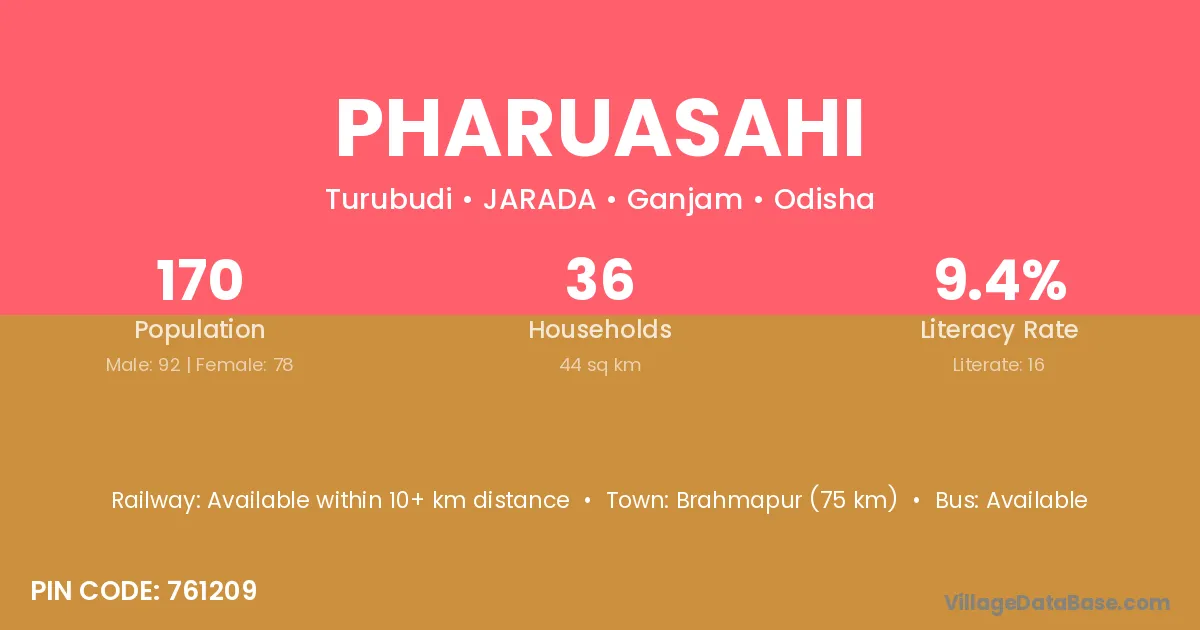 Brahmapur (75 km) is the nearest town to Pharuasahi village for major economic activities and is located approximately 75 km away.