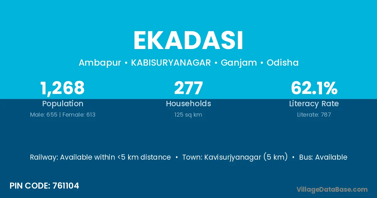 Kavisurjyanagar (5 km) is the nearest town to Ekadasi village for major economic activities and is located approximately 5 km away.