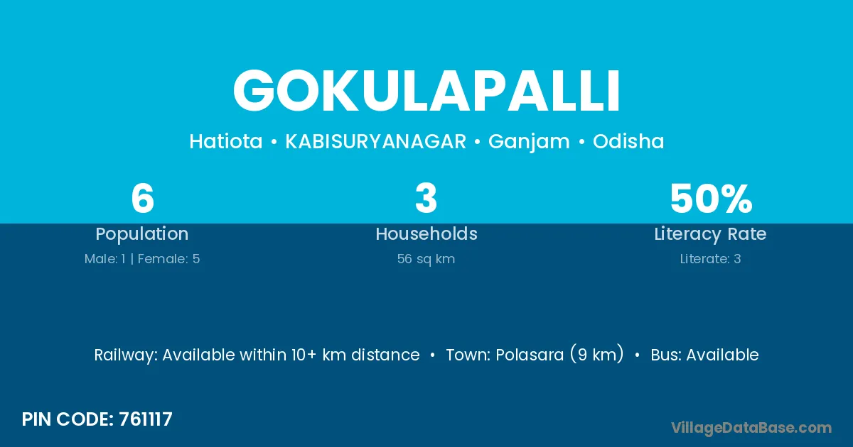 Polasara (9 km) is the nearest town to Gokulapalli village for major economic activities and is located approximately 9 km away.