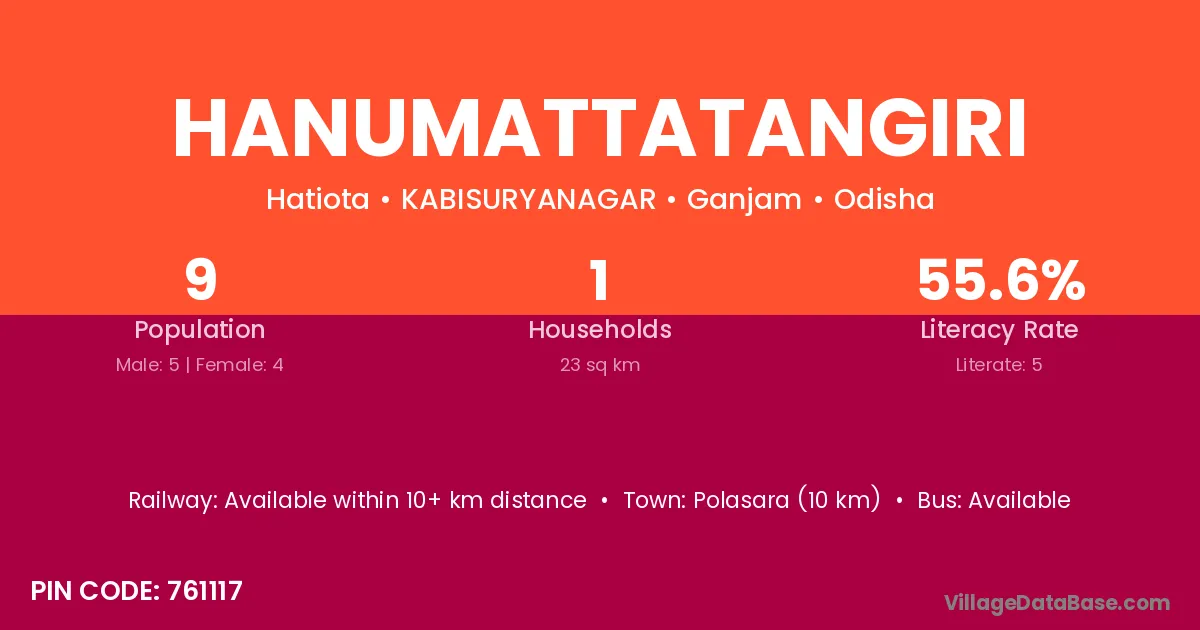 Polasara (10 km) is the nearest town to Hanumattatangiri village for major economic activities and is located approximately 10 km away.