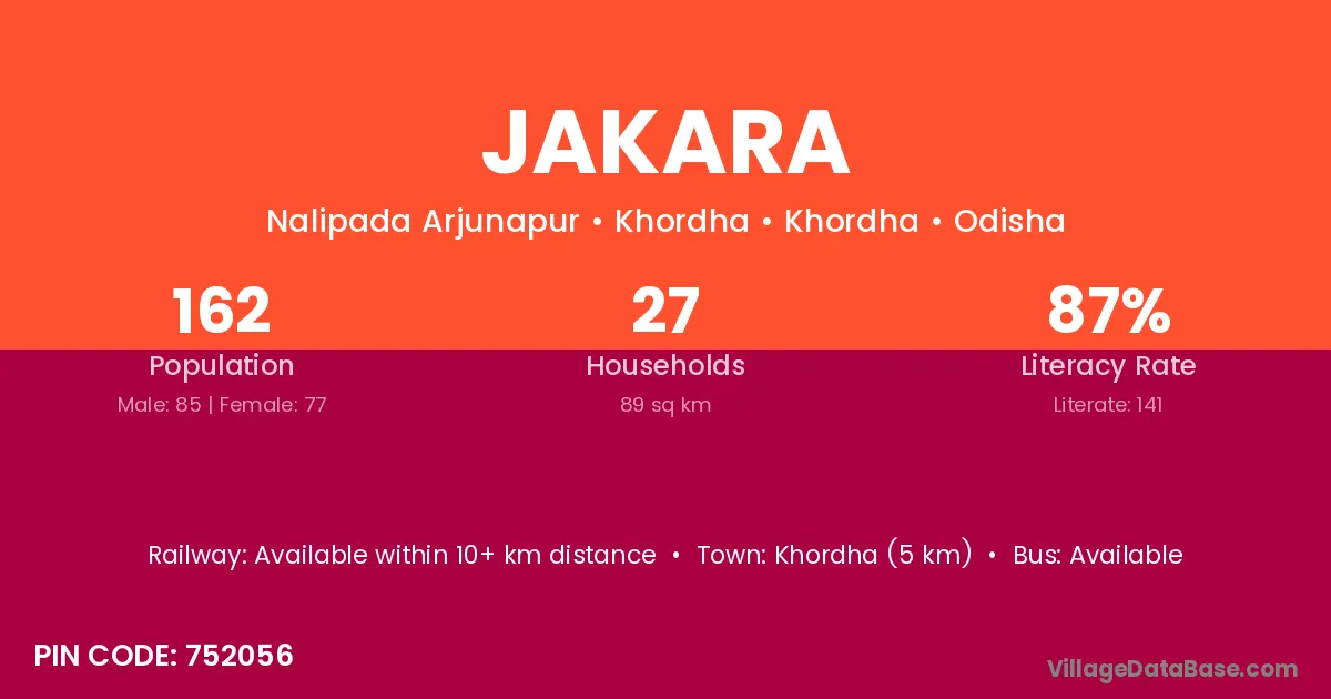 Polasara (8 km) is the nearest town to Jakara village for major economic activities and is located approximately 8 km away.