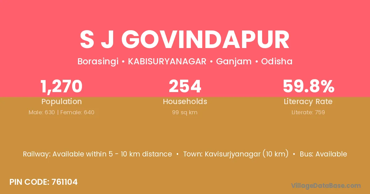 S J Govindapur village is located in the KABISURYANAGAR Tehsil of the Ganjam district in Odisha .