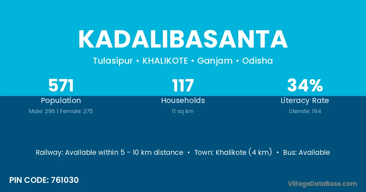Khalikote (4 km) is the nearest town to Kadalibasanta village for major economic activities and is located approximately 4 km away.