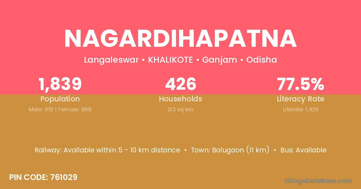 Nagardihapatna village has a total population of 1,839 people, of which 951 are males and 888 are females.