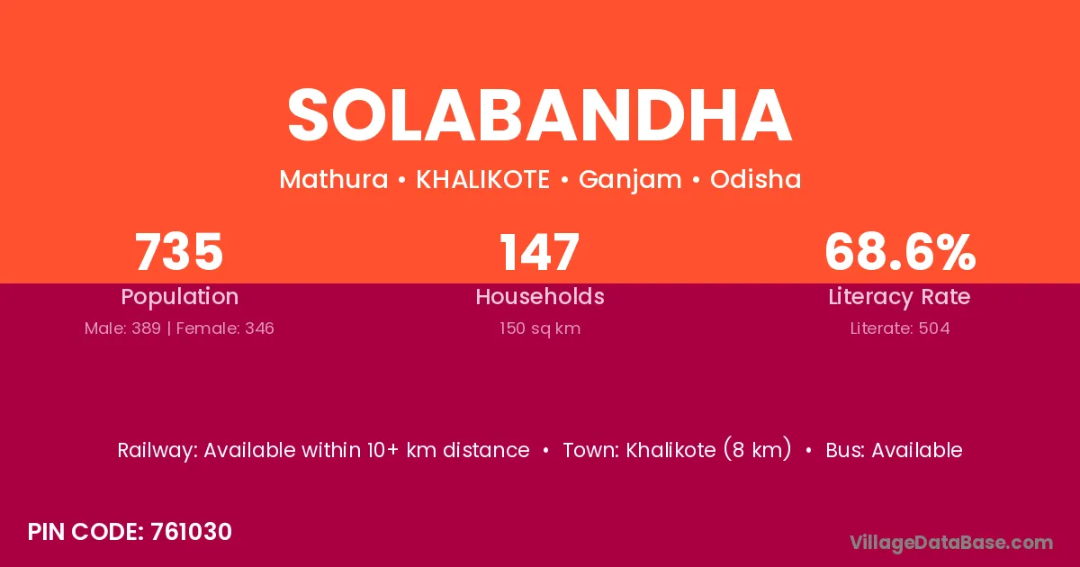 Solabandha village has a total population of 735 people, of which 389 are males and 346 are females.