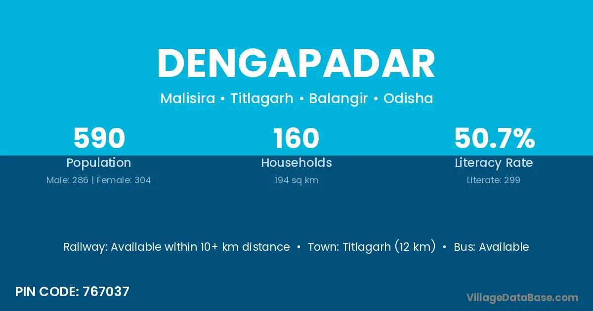 Kodala (10 km) is the nearest town to Dengapadar village for major economic activities and is located approximately 10 km away.