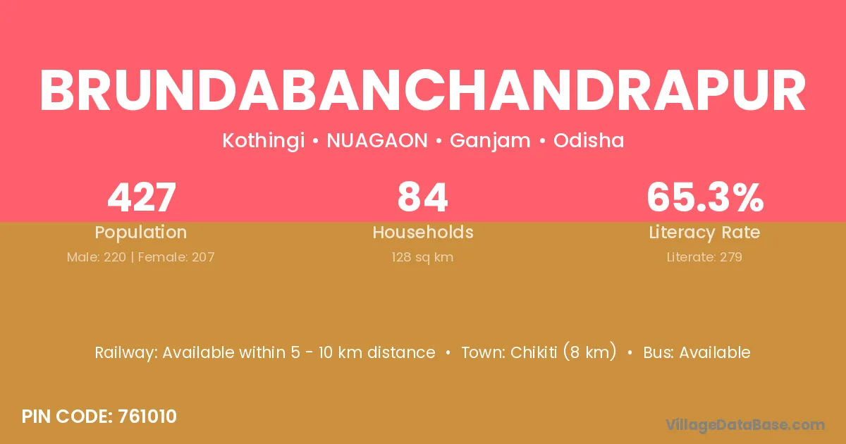 Brundabanchandrapur village has a total population of 427 people, of which 220 are males and 207 are females.
