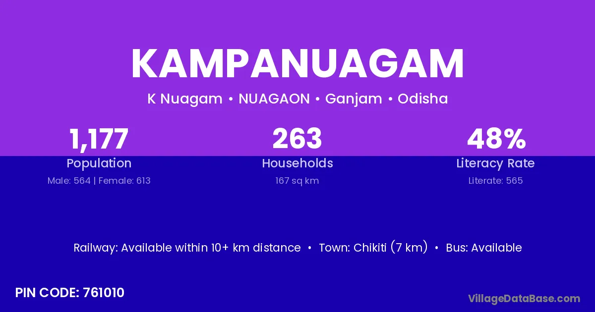 Chikiti (7 km) is the nearest town to Kampanuagam village for major economic activities and is located approximately 7 km away.