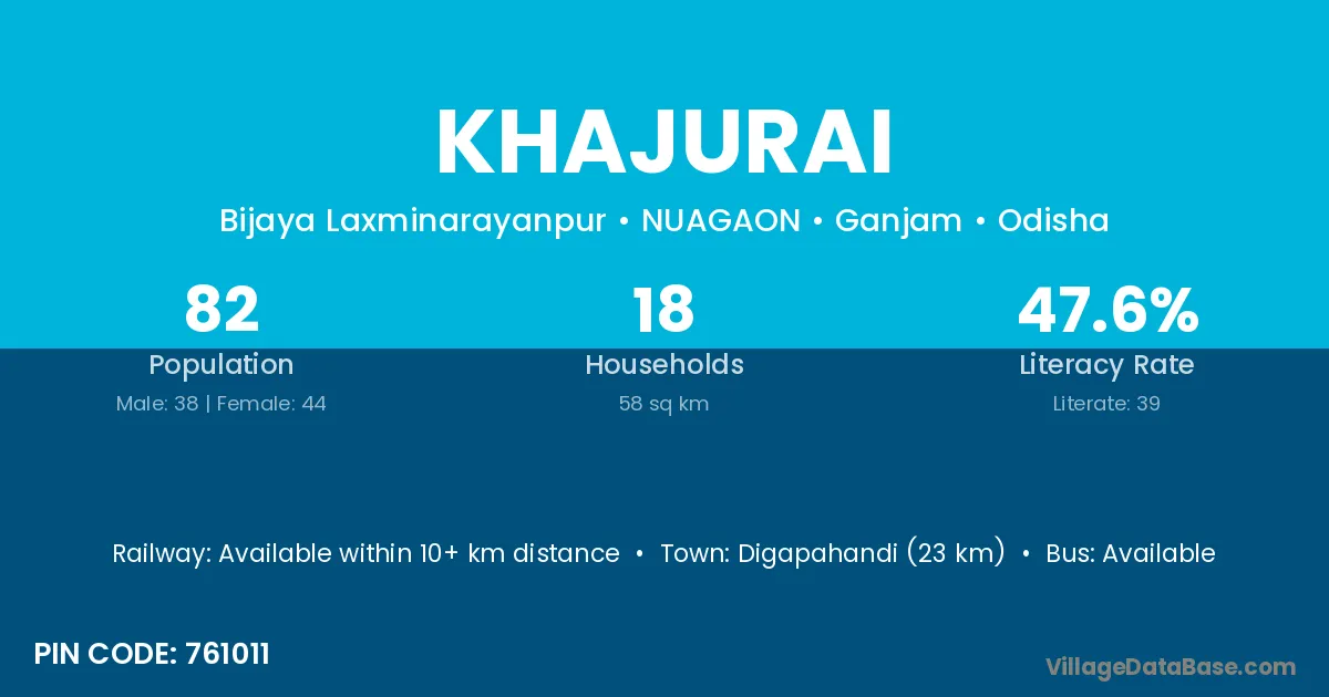 Digapahandi (23 km) is the nearest town to Khajurai village for major economic activities and is located approximately 23 km away.