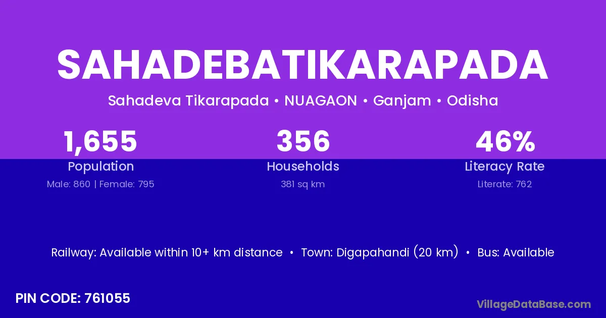 Sahadebatikarapada village has a total population of 1,655 people, of which 860 are males and 795 are females.
