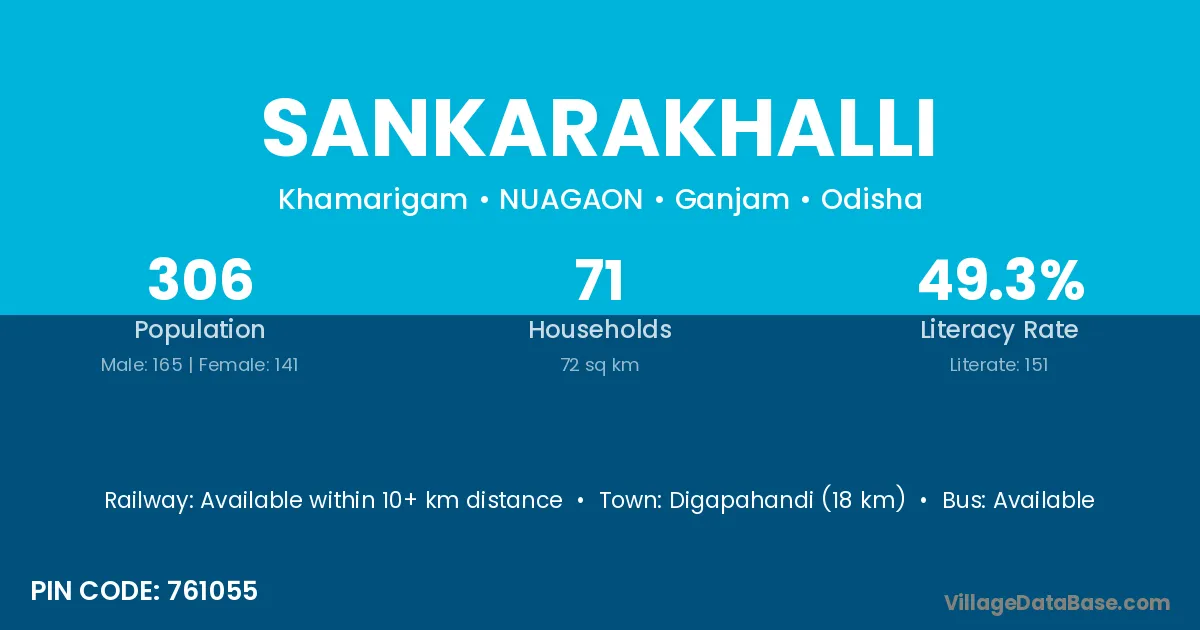 Digapahandi (18 km) is the nearest town to Sankarakhalli village for major economic activities and is located approximately 18 km away.