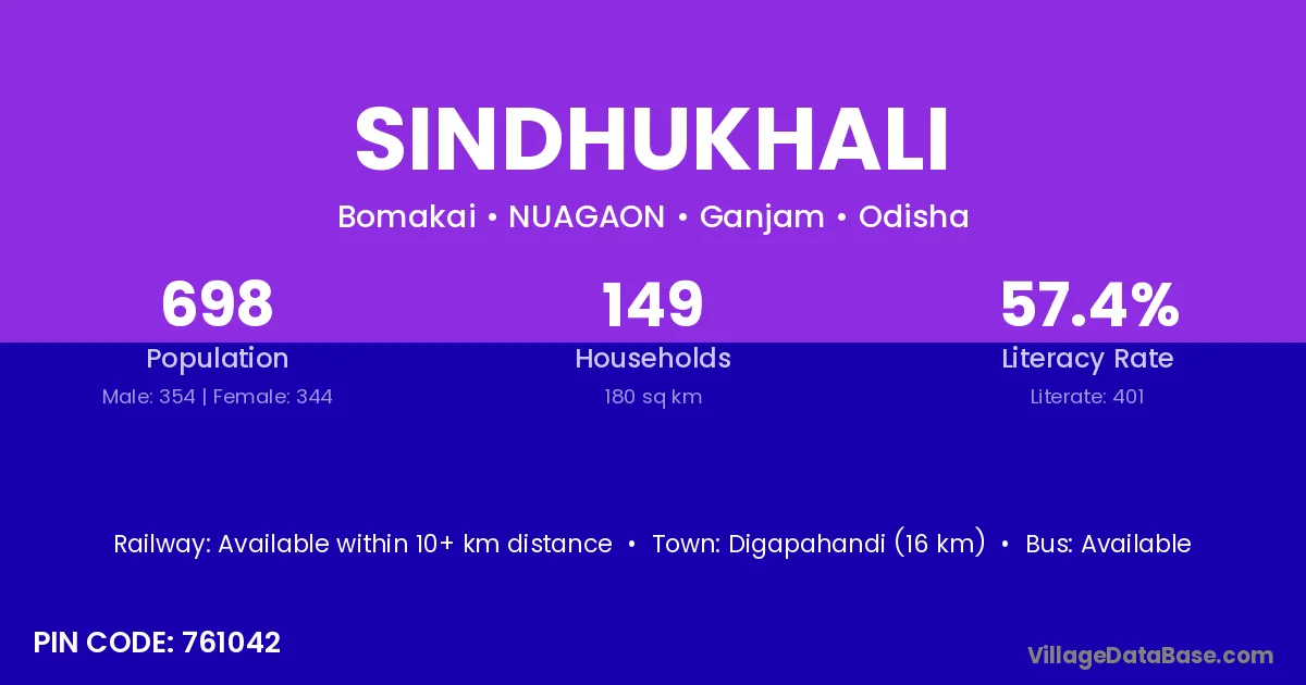 Digapahandi (16 km) is the nearest town to Sindhukhali village for major economic activities and is located approximately 16 km away.