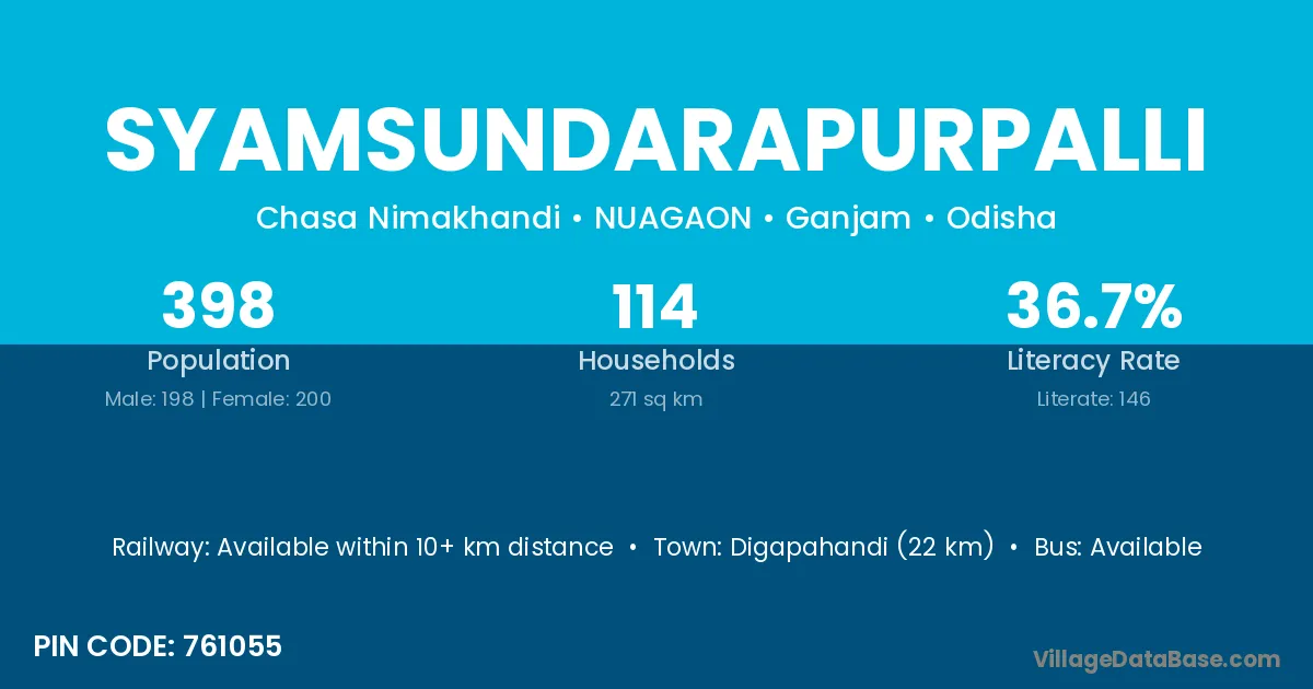 Digapahandi (22 km) is the nearest town to Syamsundarapurpalli village for major economic activities and is located approximately 22 km away.