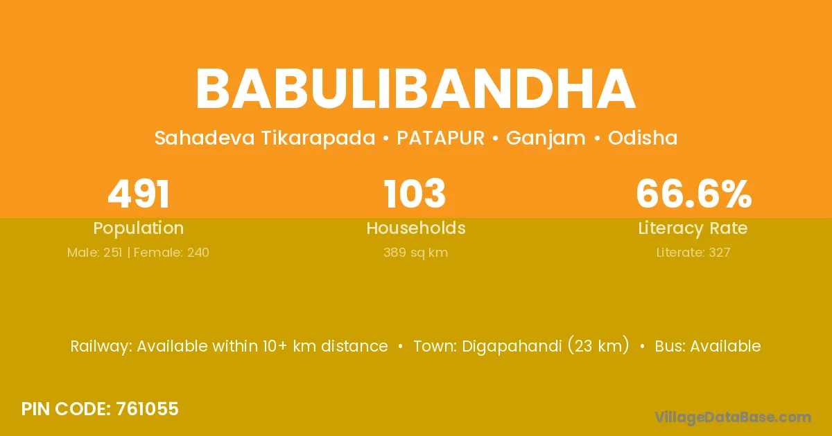 Digapahandi (23 km) is the nearest town to Babulibandha village for major economic activities and is located approximately 23 km away.