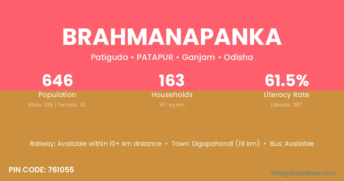 Brahmanapanka village has a total population of 646 people, of which 335 are males and 311 are females.