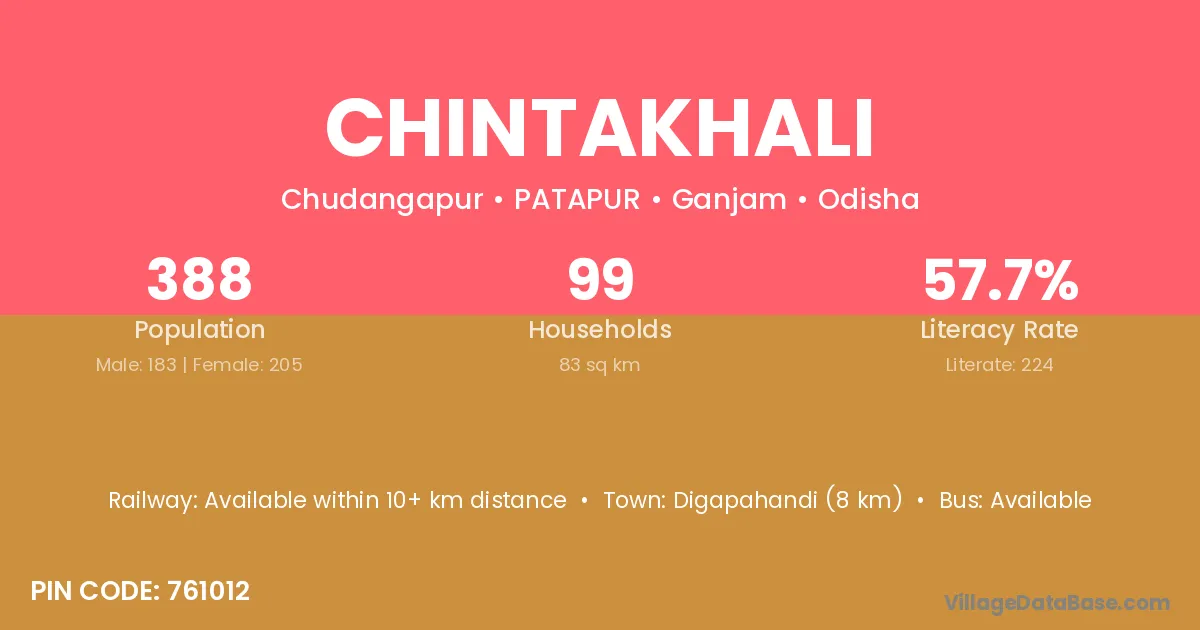 Digapahandi (8 km) is the nearest town to Chintakhali village for major economic activities and is located approximately 8 km away.