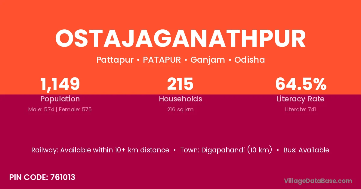 Digapahandi (10 km) is the nearest town to Ostajaganathpur village for major economic activities and is located approximately 10 km away.