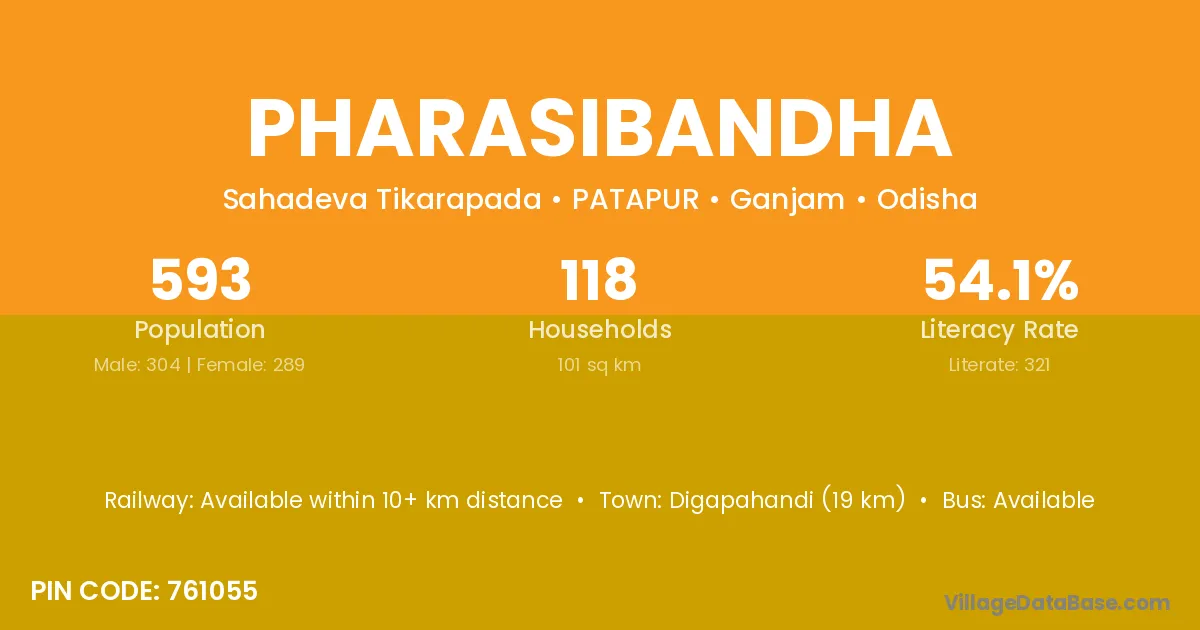 Digapahandi (19 km) is the nearest town to Pharasibandha village for major economic activities and is located approximately 19 km away.