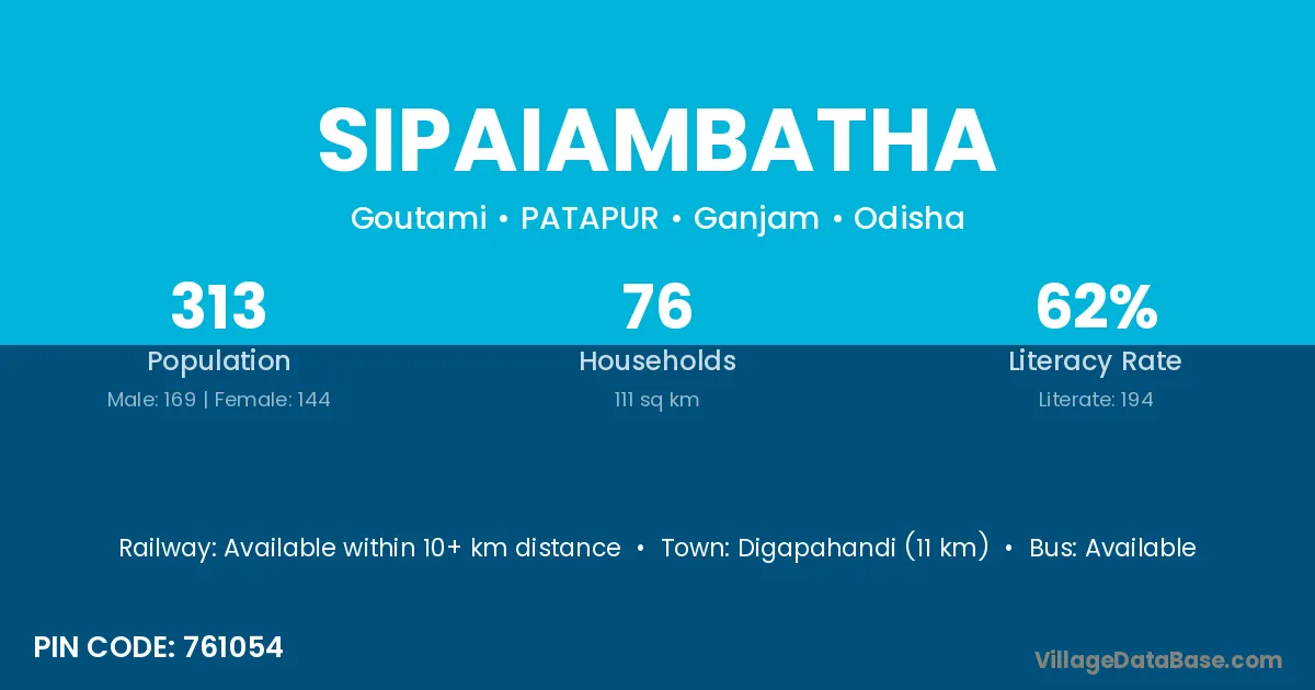 Digapahandi (11 km) is the nearest town to Sipaiambatha village for major economic activities and is located approximately 11 km away.
