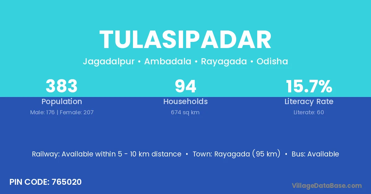 Digapahandi (8 km) is the nearest town to Tulasipadar village for major economic activities and is located approximately 8 km away.