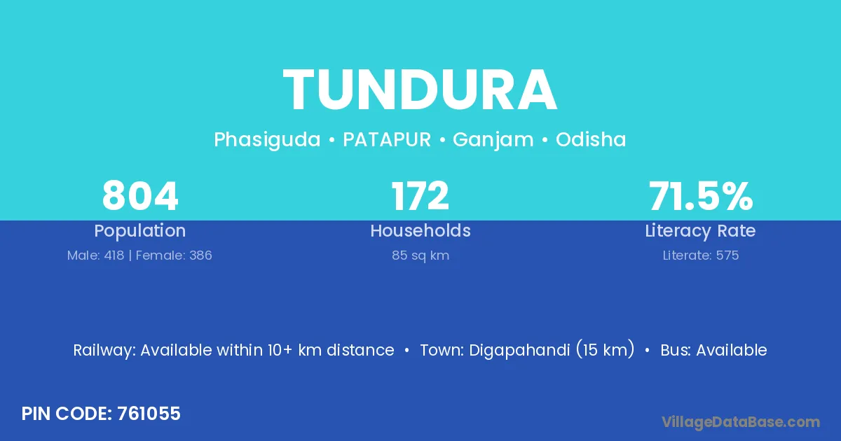 Digapahandi (15 km) is the nearest town to Tundura village for major economic activities and is located approximately 15 km away.