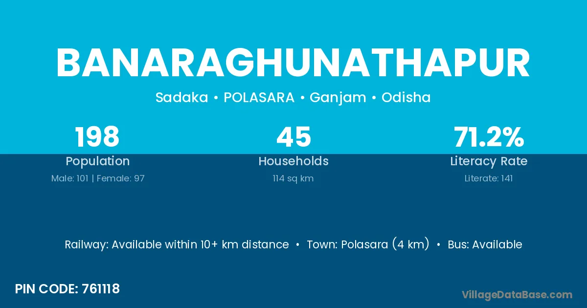 Polasara (4 km) is the nearest town to Banaraghunathapur village for major economic activities and is located approximately 4 km away.