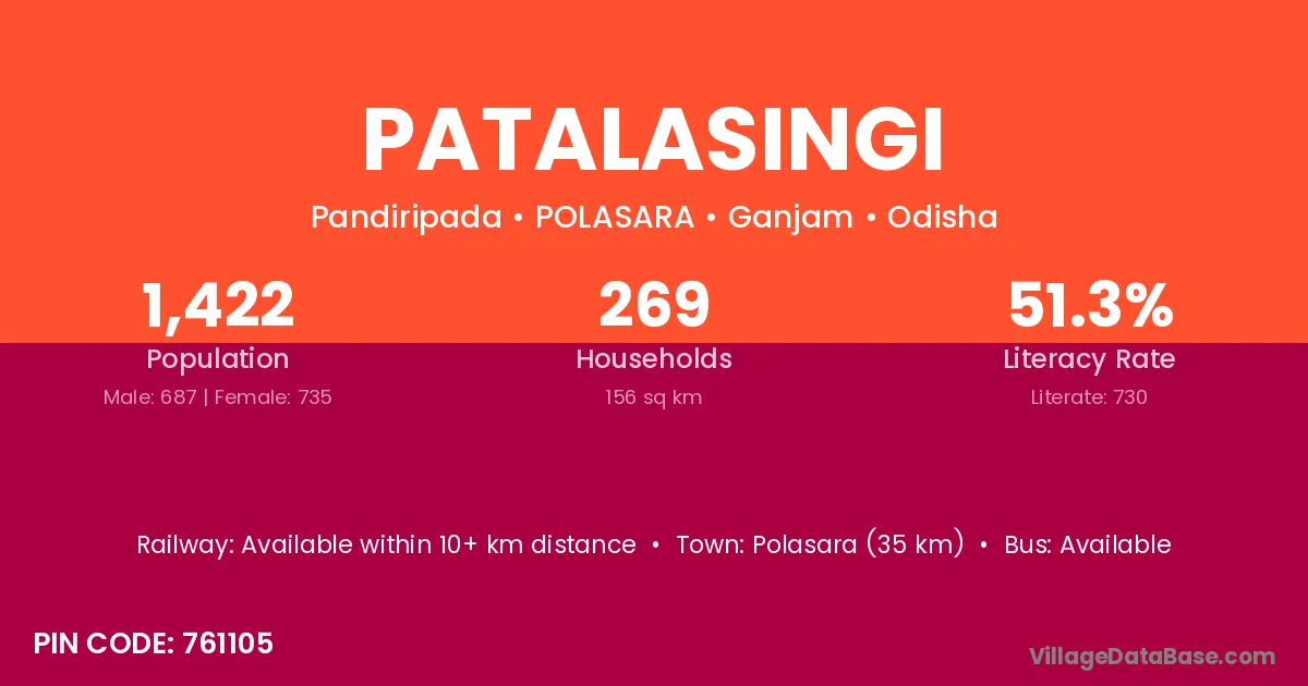 Polasara (35 km) is the nearest town to Patalasingi village for major economic activities and is located approximately 35 km away.