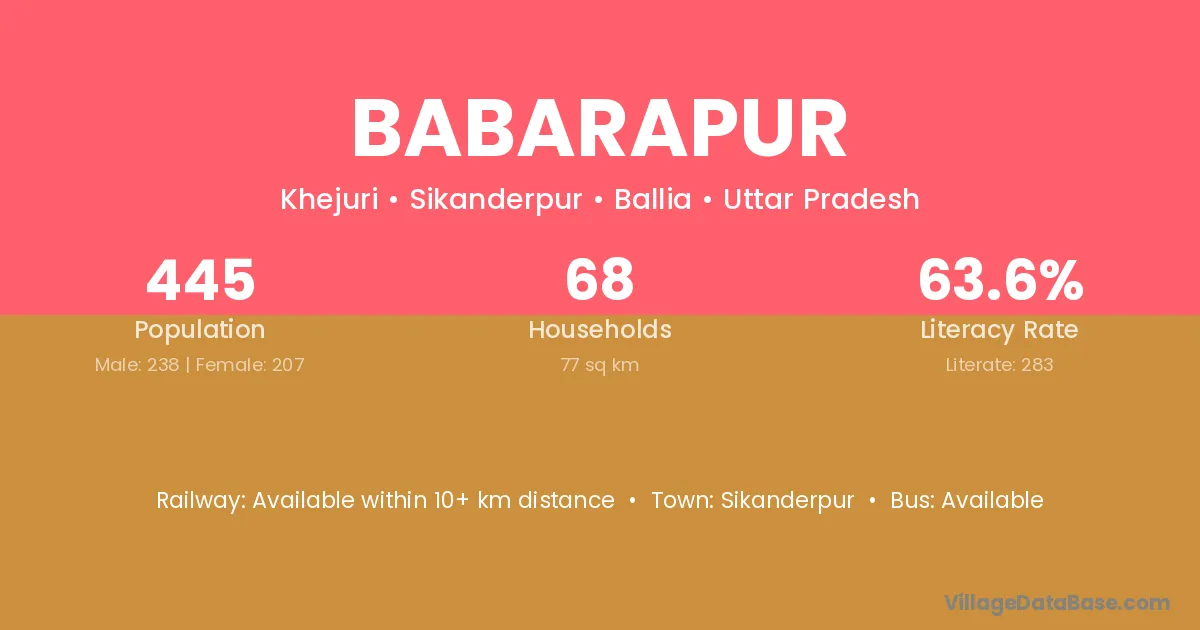 Babarapur village has a total population of 215 people, of which 115 are males and 100 are females.