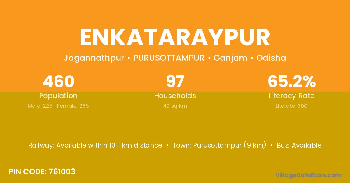 Purusottampur (9 km) is the nearest town to Enkataraypur village for major economic activities and is located approximately 9 km away.