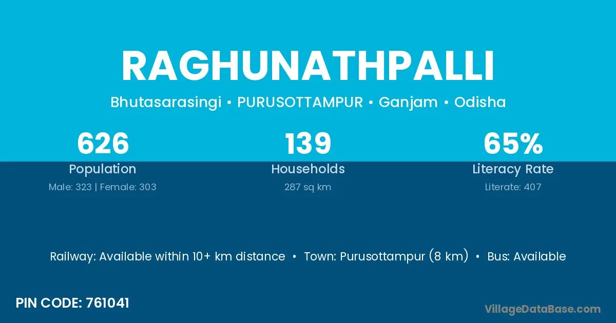 According to Census 2011 information, the village code of Raghunathpalli village is 761041.