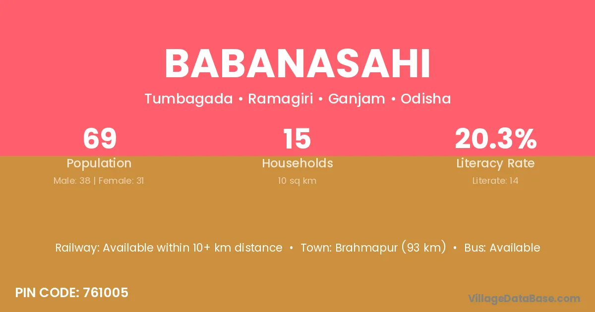 Babanasahi village has a total population of 69 people, of which 38 are males and 31 are females.