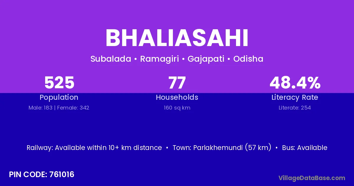Chhatrapur (76 km) is the nearest town to Bhaliasahi village for major economic activities and is located approximately 76 km away.
