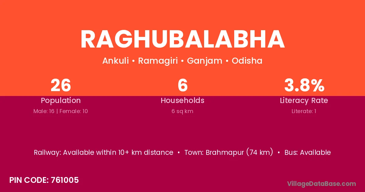 Brahmapur (74 km) is the nearest town to Raghubalabha village for major economic activities and is located approximately 74 km away.