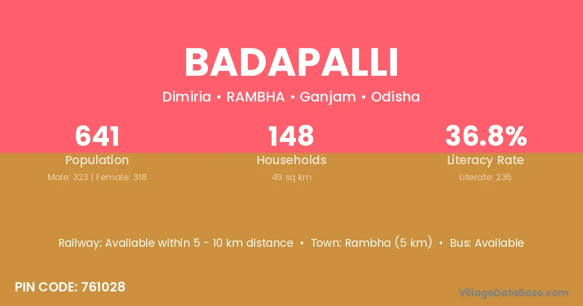 Badapalli village is located in the RAMBHA Tehsil of the Ganjam district in Odisha .