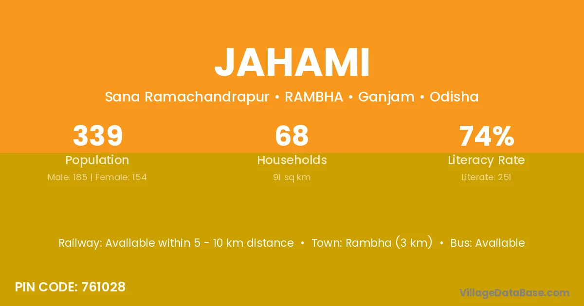 Jahami village is located in the RAMBHA Tehsil of the Ganjam district in Odisha .