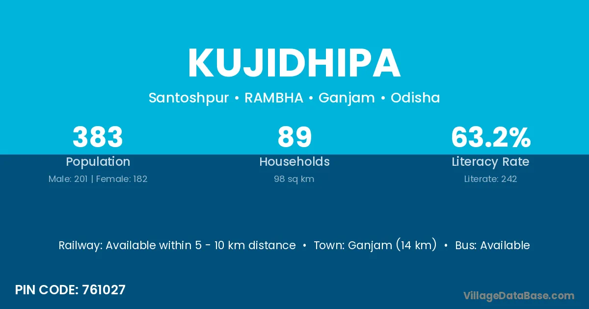 Ganjam (14 km) is the nearest town to Kujidhipa village for major economic activities and is located approximately 14 km away.