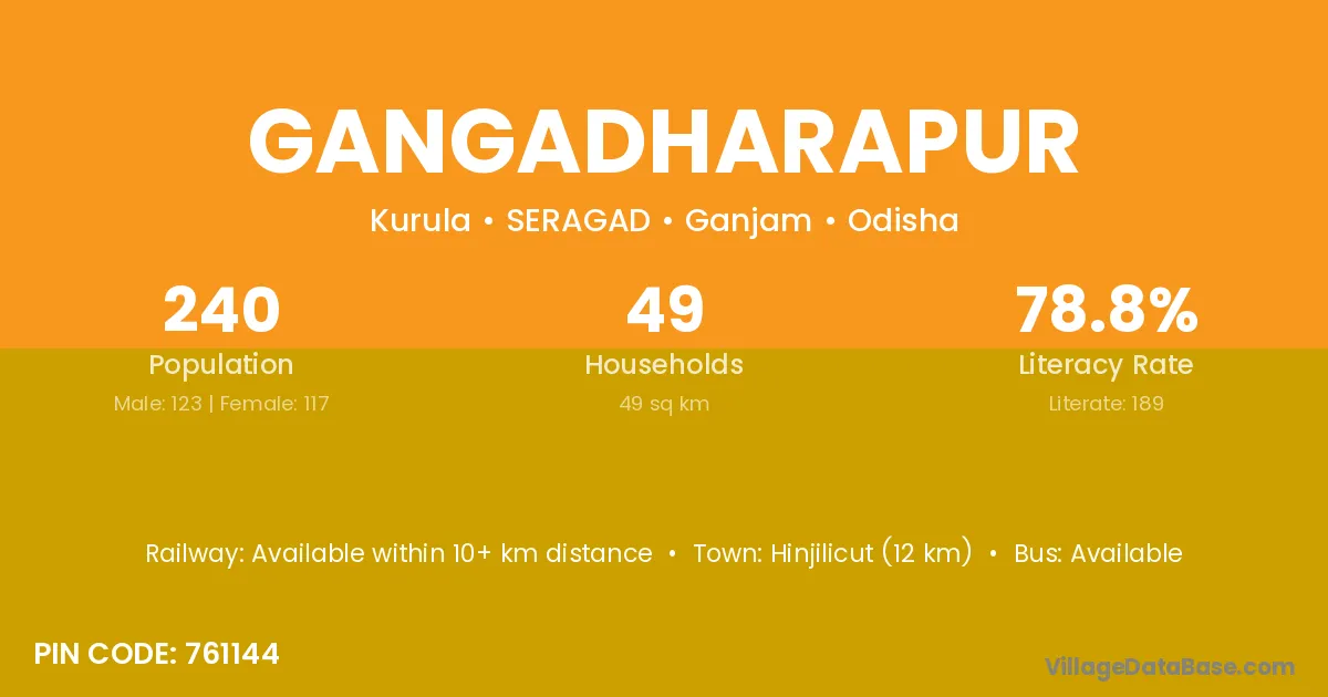 Gangadharapur village has a total population of 240 people, of which 123 are males and 117 are females.
