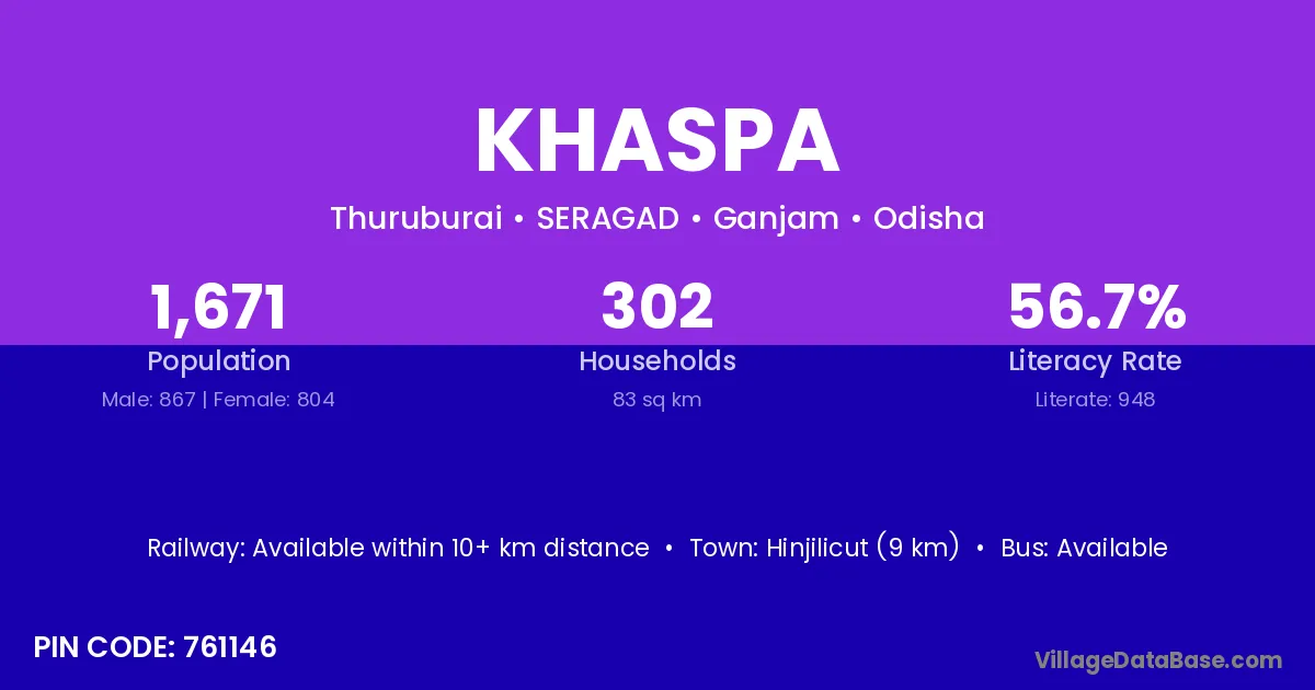 Hinjilicut (9 km) is the nearest town to Khaspa village for major economic activities and is located approximately 9 km away.