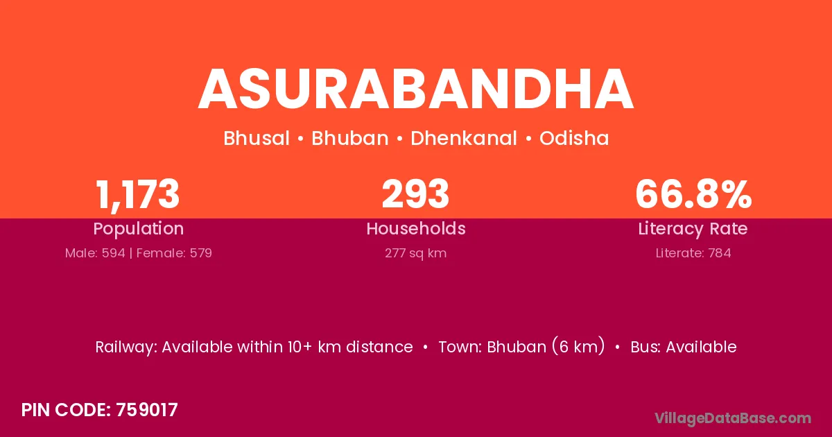 Surada (8 km) is the nearest town to Asurabandha village for major economic activities and is located approximately 8 km away.