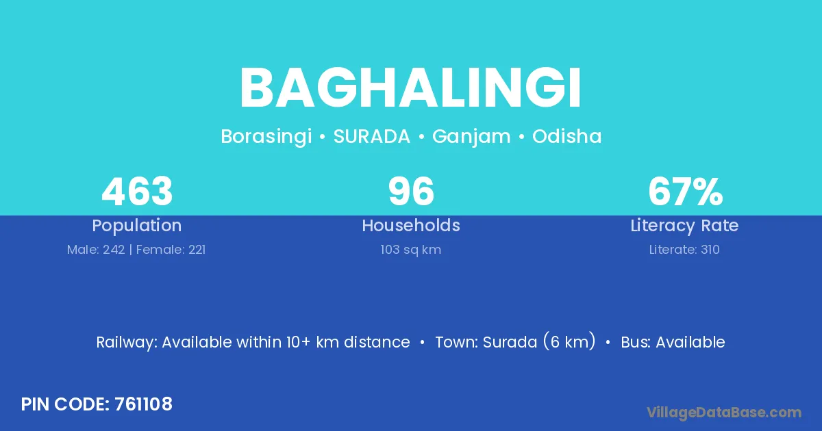 Surada (6 km) is the nearest town to Baghalingi village for major economic activities and is located approximately 6 km away.