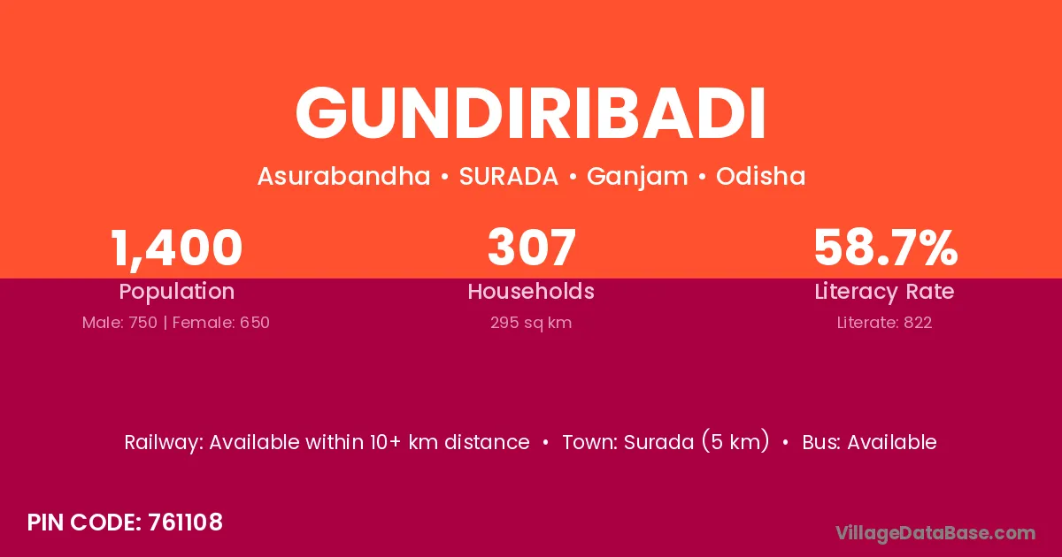 Surada (5 km) is the nearest town to Gundiribadi village for major economic activities and is located approximately 5 km away.