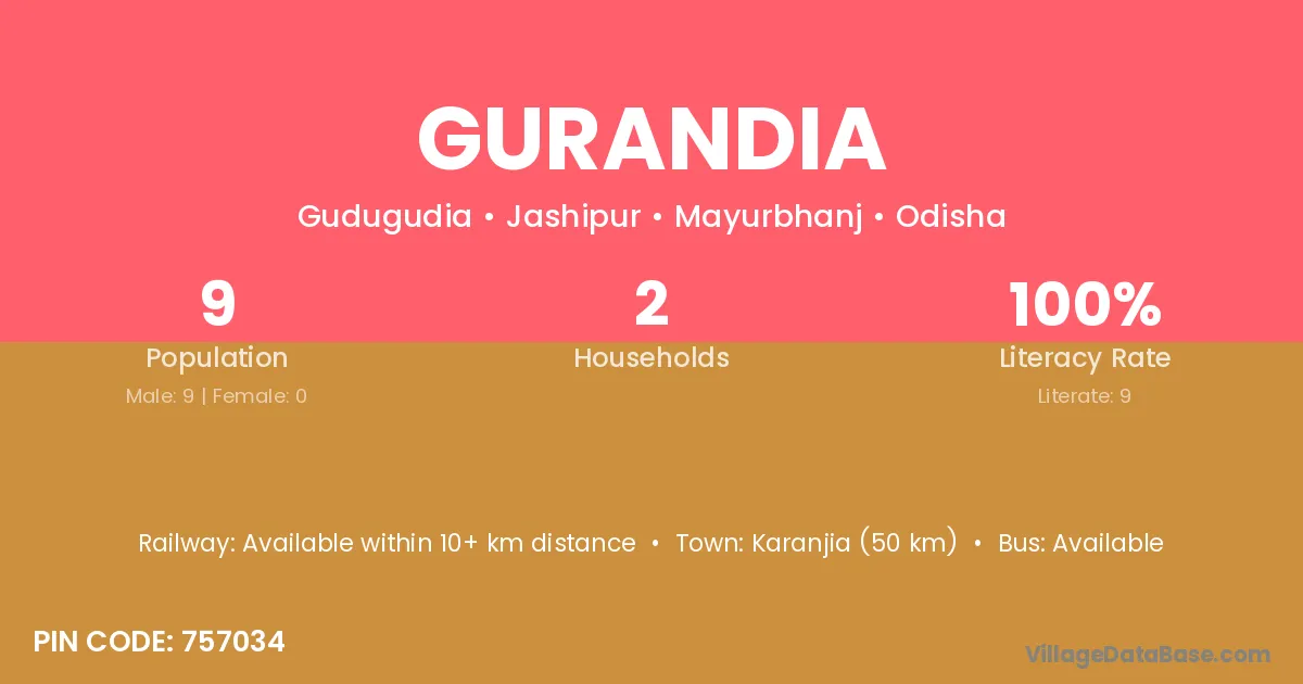 Surada (9 km) is the nearest town to Gurandia village for major economic activities and is located approximately 9 km away.