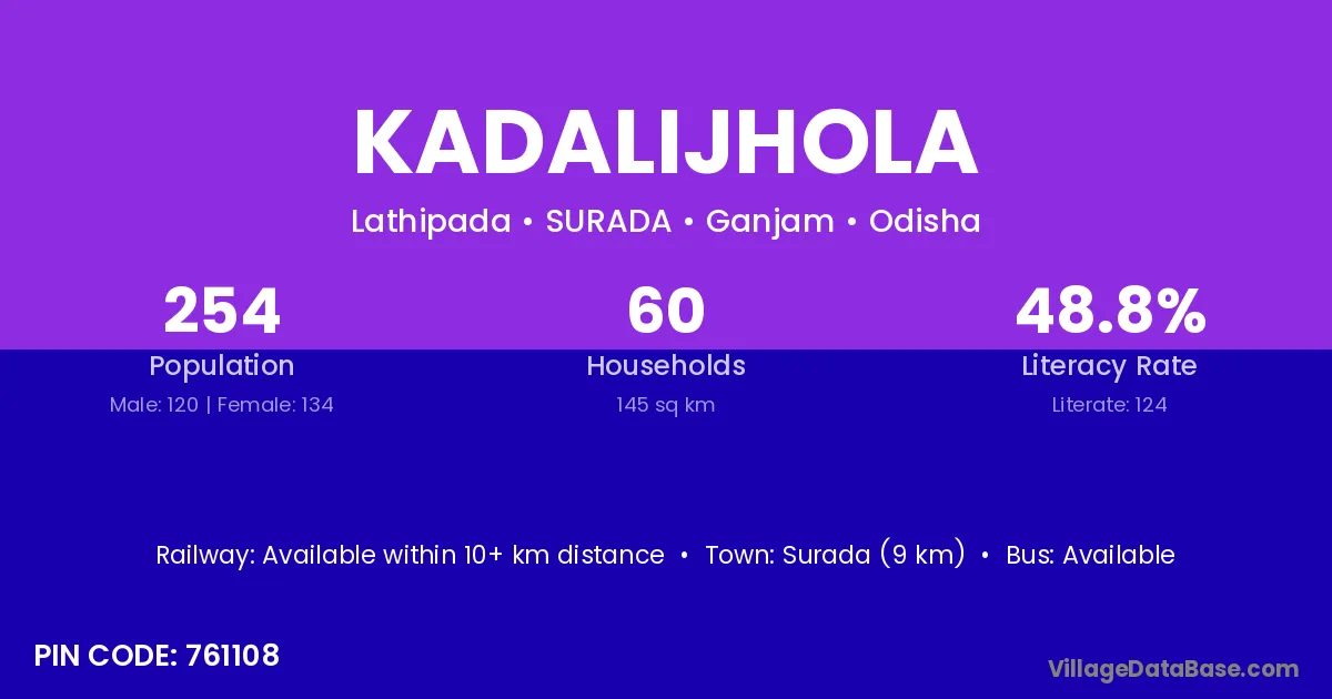 Kadalijhola village has a total population of 254 people, of which 120 are males and 134 are females.