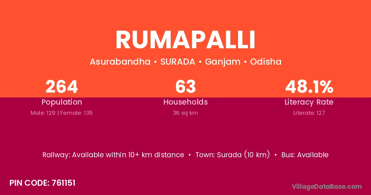 Rumapalli village is located in the SURADA Tehsil of the Ganjam district in Odisha .