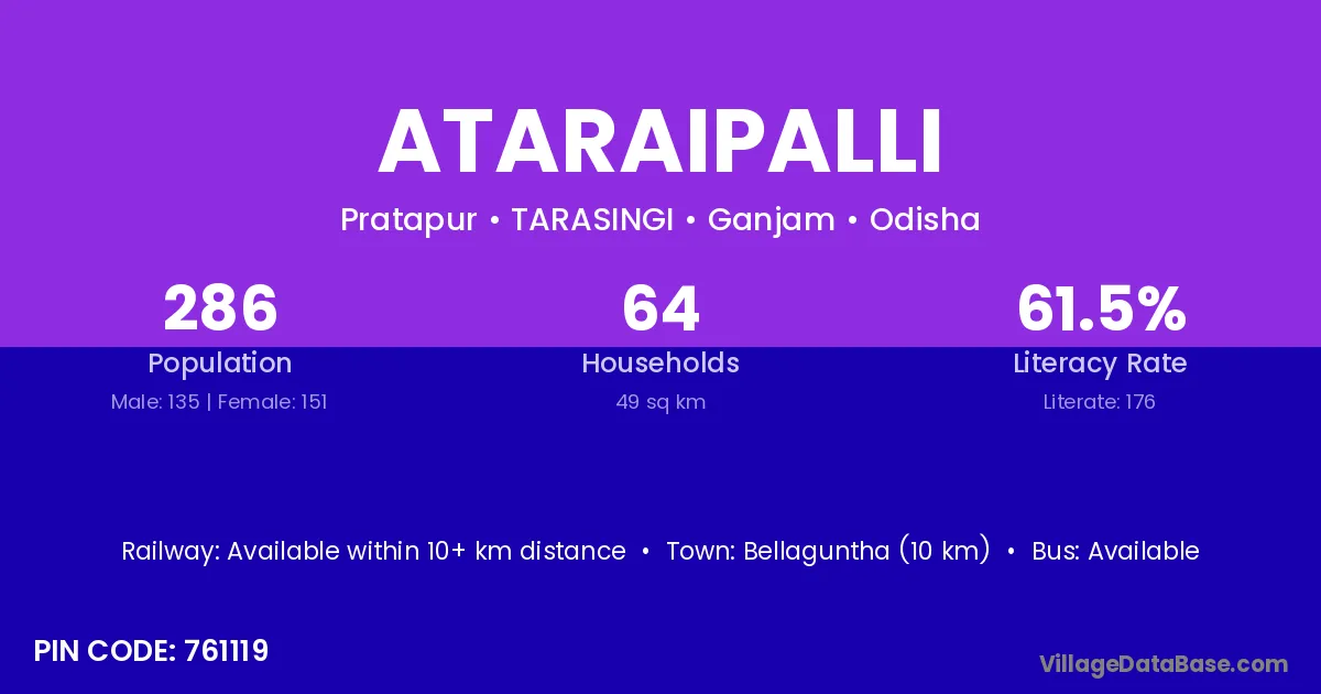 Bellaguntha (10 km) is the nearest town to Ataraipalli village for major economic activities and is located approximately 10 km away.
