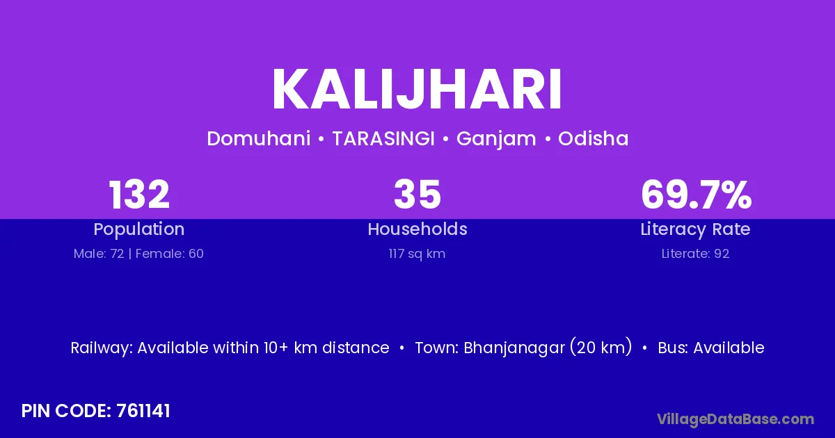 Bhanjanagar (20 km) is the nearest town to Kalijhari village for major economic activities and is located approximately 20 km away.