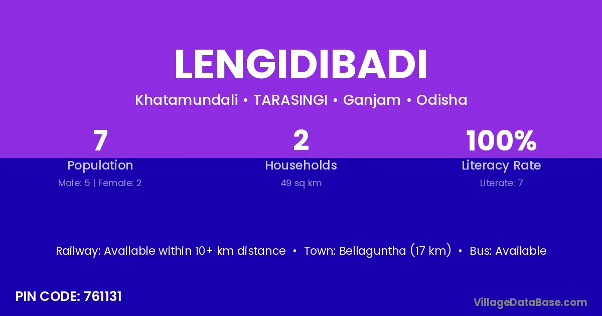 Bellaguntha (17 km) is the nearest town to Lengidibadi village for major economic activities and is located approximately 17 km away.