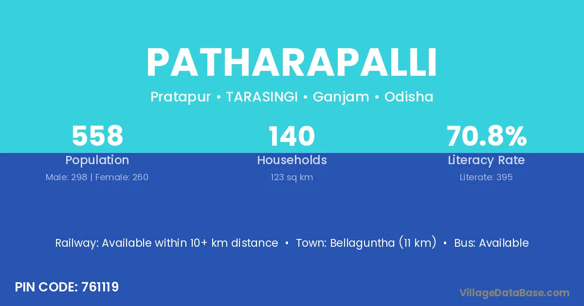 Bellaguntha (11 km) is the nearest town to Patharapalli village for major economic activities and is located approximately 11 km away.