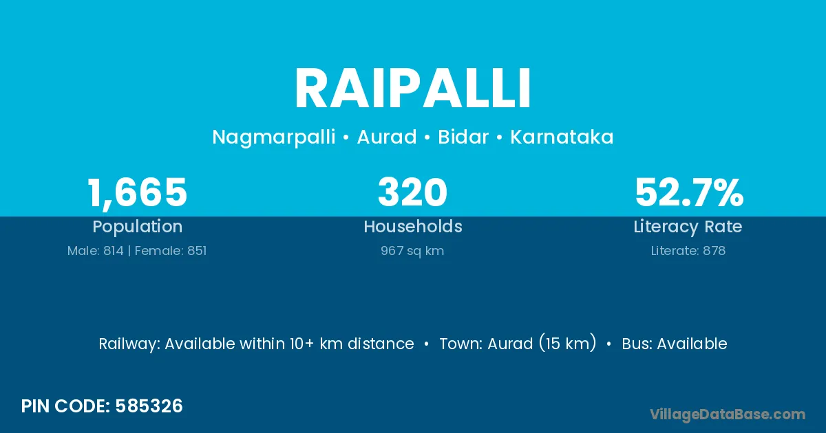 Raipalli village has a total population of 1,770 people, of which 916 are males and 854 are females.