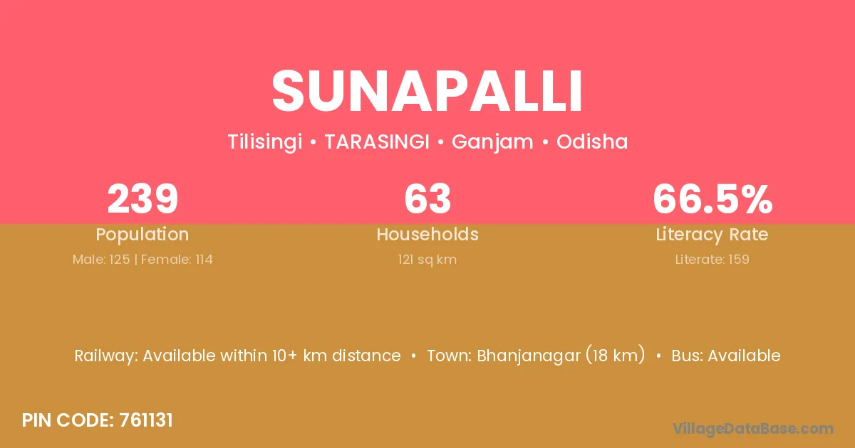 Bhanjanagar (18 km) is the nearest town to Sunapalli village for major economic activities and is located approximately 18 km away.
